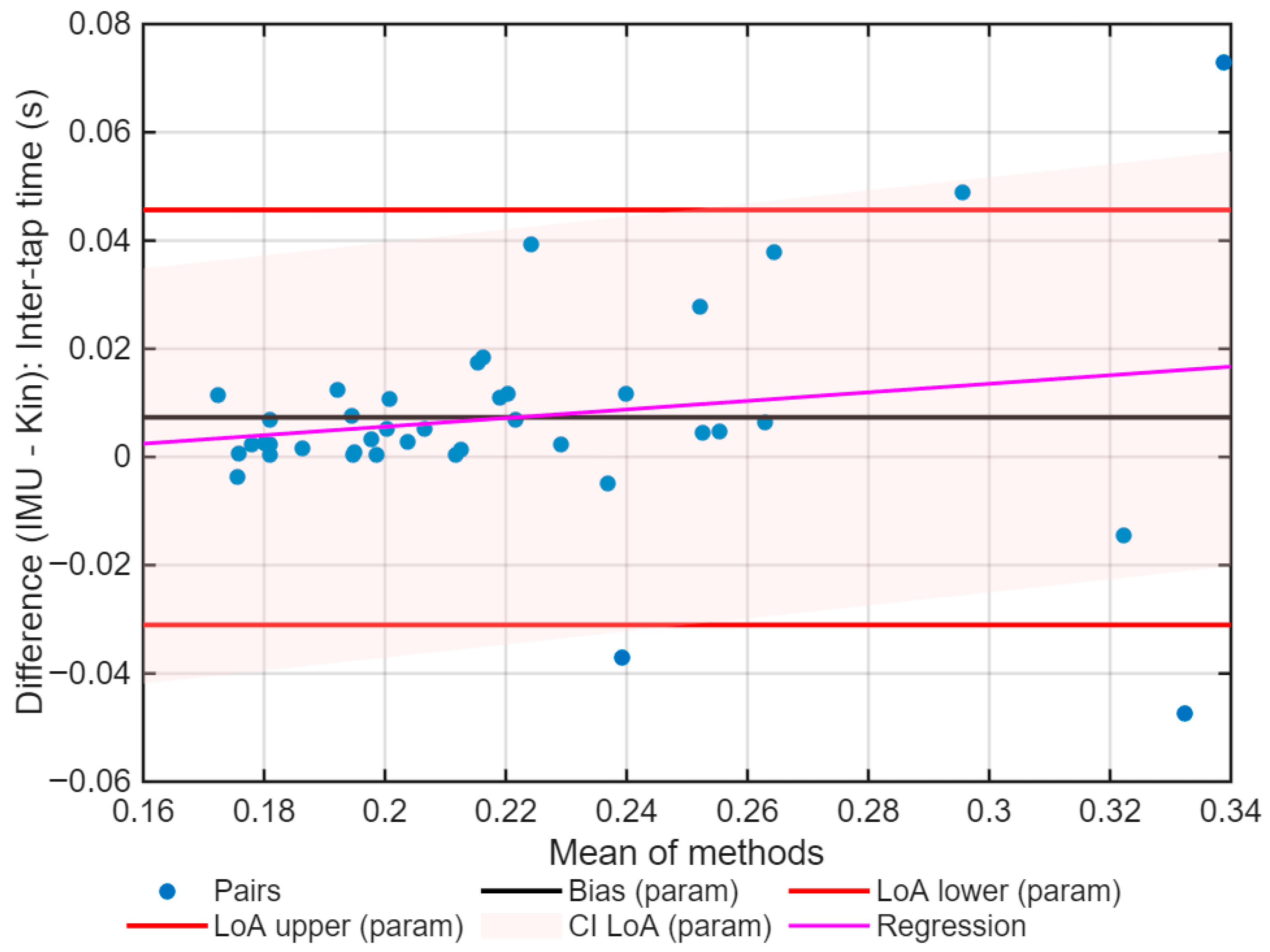 | LoA (95%) | −6.27 to 6.33 | −0.042 to 0.061 |