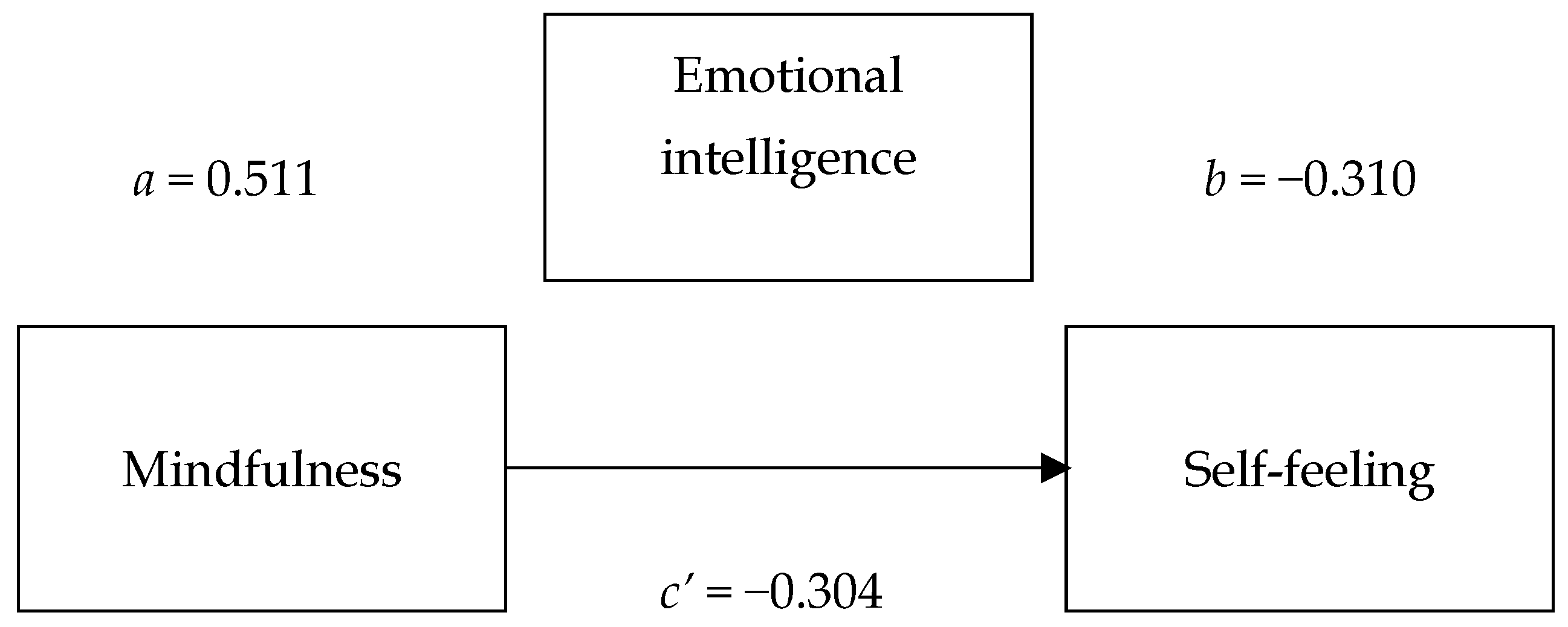 | b: emotional intelligence → self-feeling (stress, anxiety, depression) | −0.310 | 0.094 | −3.30 | 0.001 | [−0.495, −0.124] |