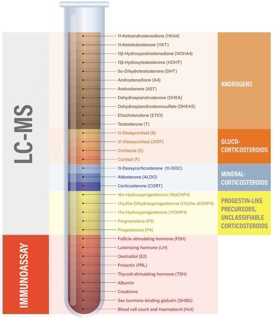 - Turcu, A.; Smith, J.M.; Auchus, R.; Rainey, W.E. Adrenal Androgens and Androgen Precursors—Definition, Synthesis, Regulation and Physiologic Actions. Compr. Physiol. 2014, 4, 1369–1381. [Google Scholar] [CrossRef] [PubMed]