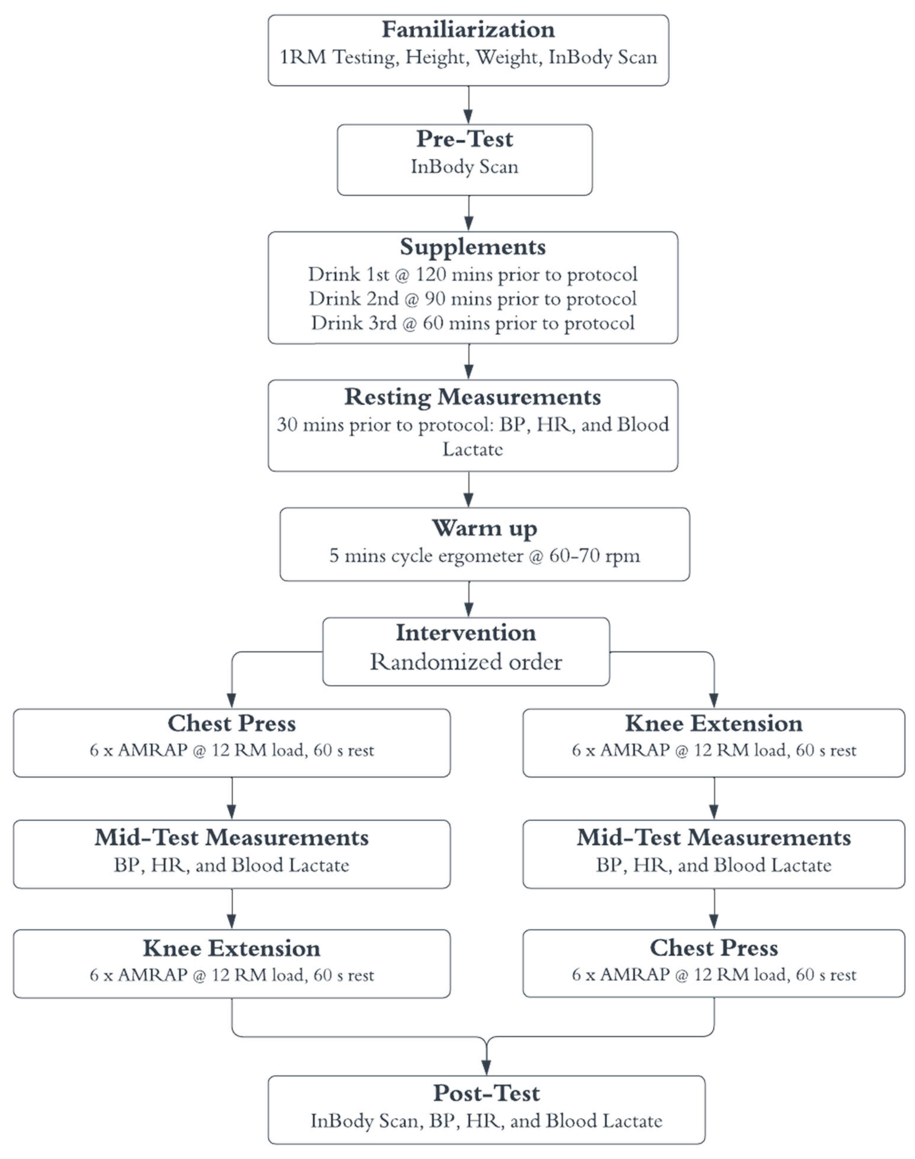 Williams, M.L.A.; Barrett, C.M.E.; Lawson, E.; Major, C.P.; Shea, A.S.M.; Squires, K.; Squires, M.; Zare, R.; Heinrich, K.M.; Behm, D.G. No Ergogenic Effect of Caffeine or Sodium Bicarbonate on Resistance Exercise Performance: A Double-Blind Crossover Study with Sex-Based Analysis. Sports 2025, 13, 427. https://doi.org/10.3390/sports13120427