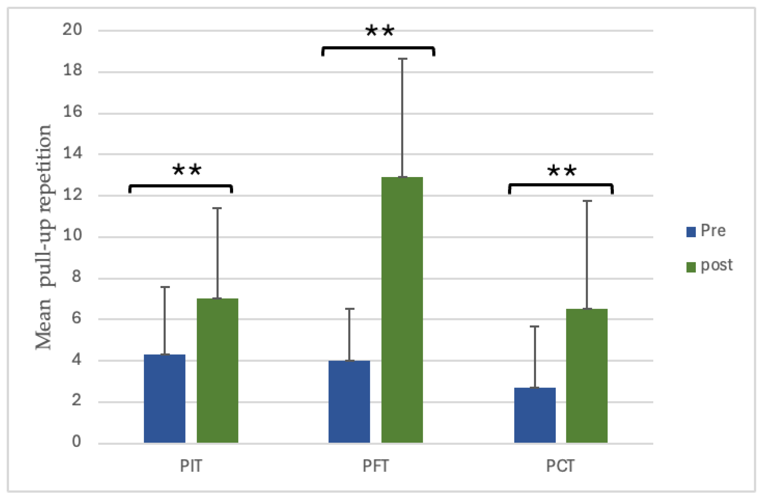 | Pull-up pre-test | 4.3 ± 3.2 | 4.0 ± 2.5 | 2.7 ± 2.9 | 0.4 |