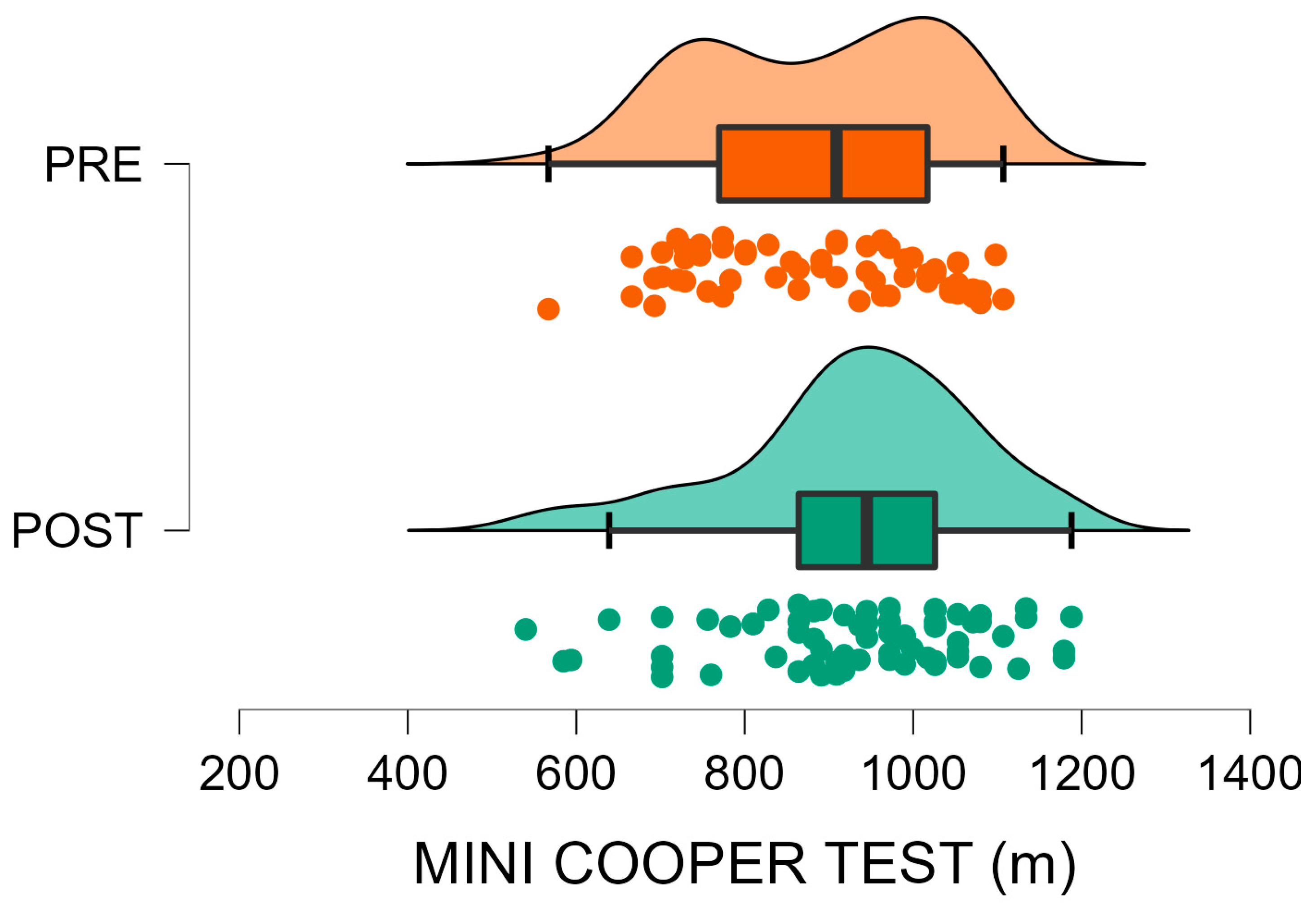 | Mini Cooper Test (m) | 889.2 ± 140.9 | 922.8 ± 148.4 | +3.8% | 0.176 |