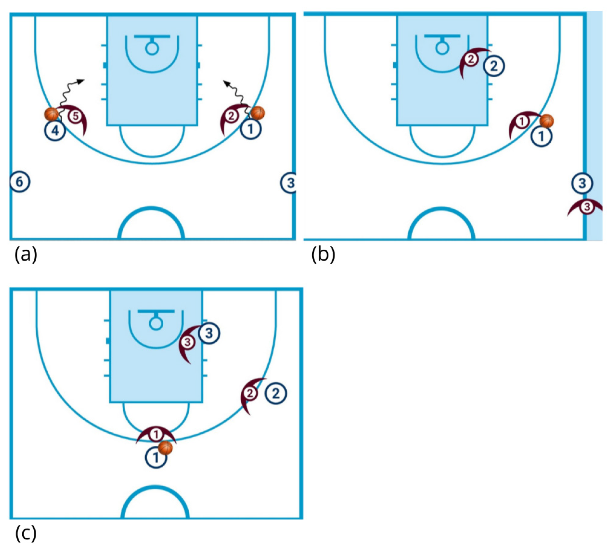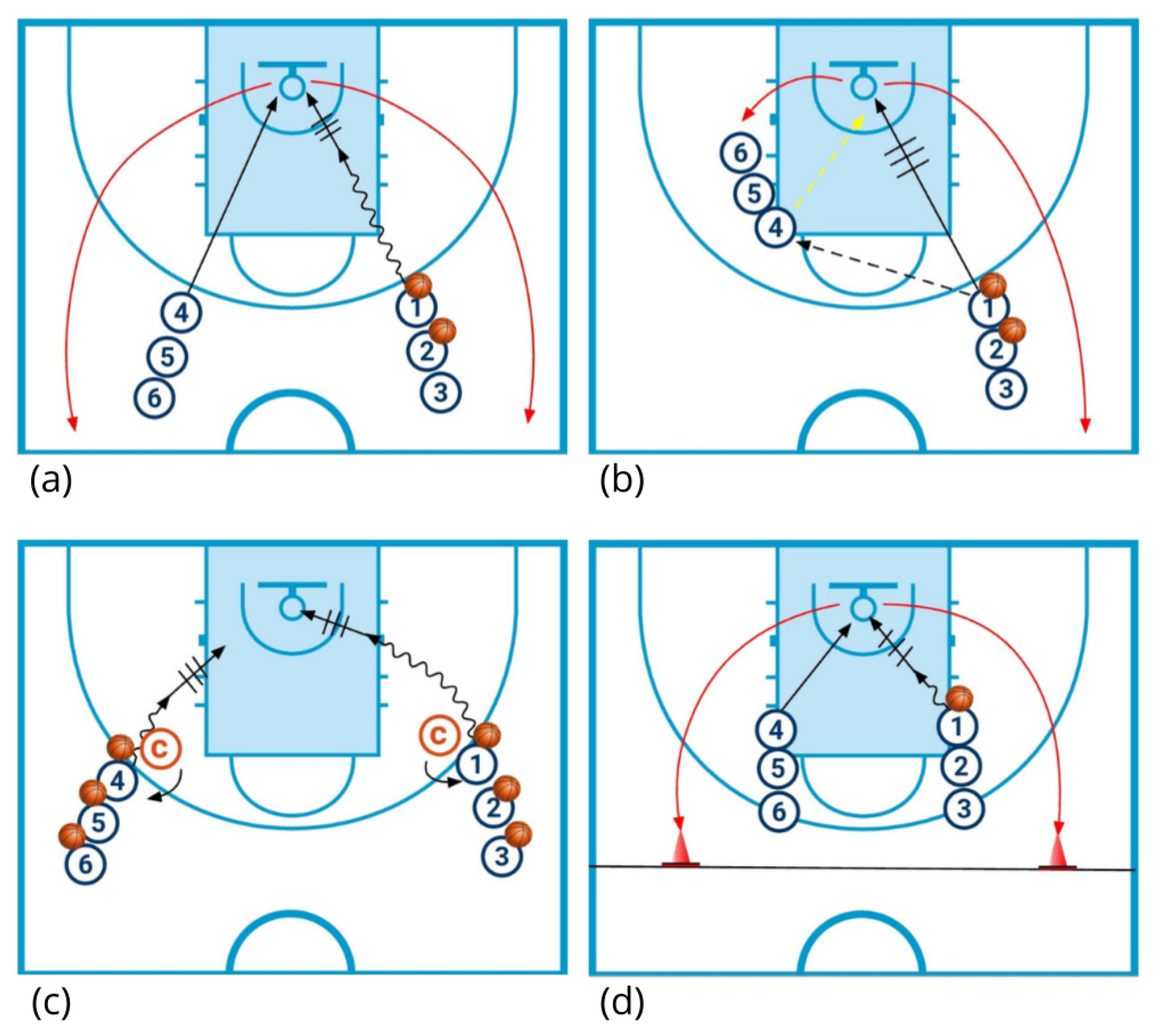 - Bredt, S.G.; de Souza Camargo, D.; Vidigal Borges Mortoza, B.; Pereira de Andrade, A.G.; Paolucci, L.A.; Lemos Nascimento Rosso, T.; Moreira Praça, G.; Chagas, M.H. Additional players and half-court areas enhance group tactical-technical behavior and decrease physical and physiological responses in basketball small-sided games. Int. J. Sports Sci. Coach. 2022, 17, 1079–1088. [Google Scholar] [CrossRef]