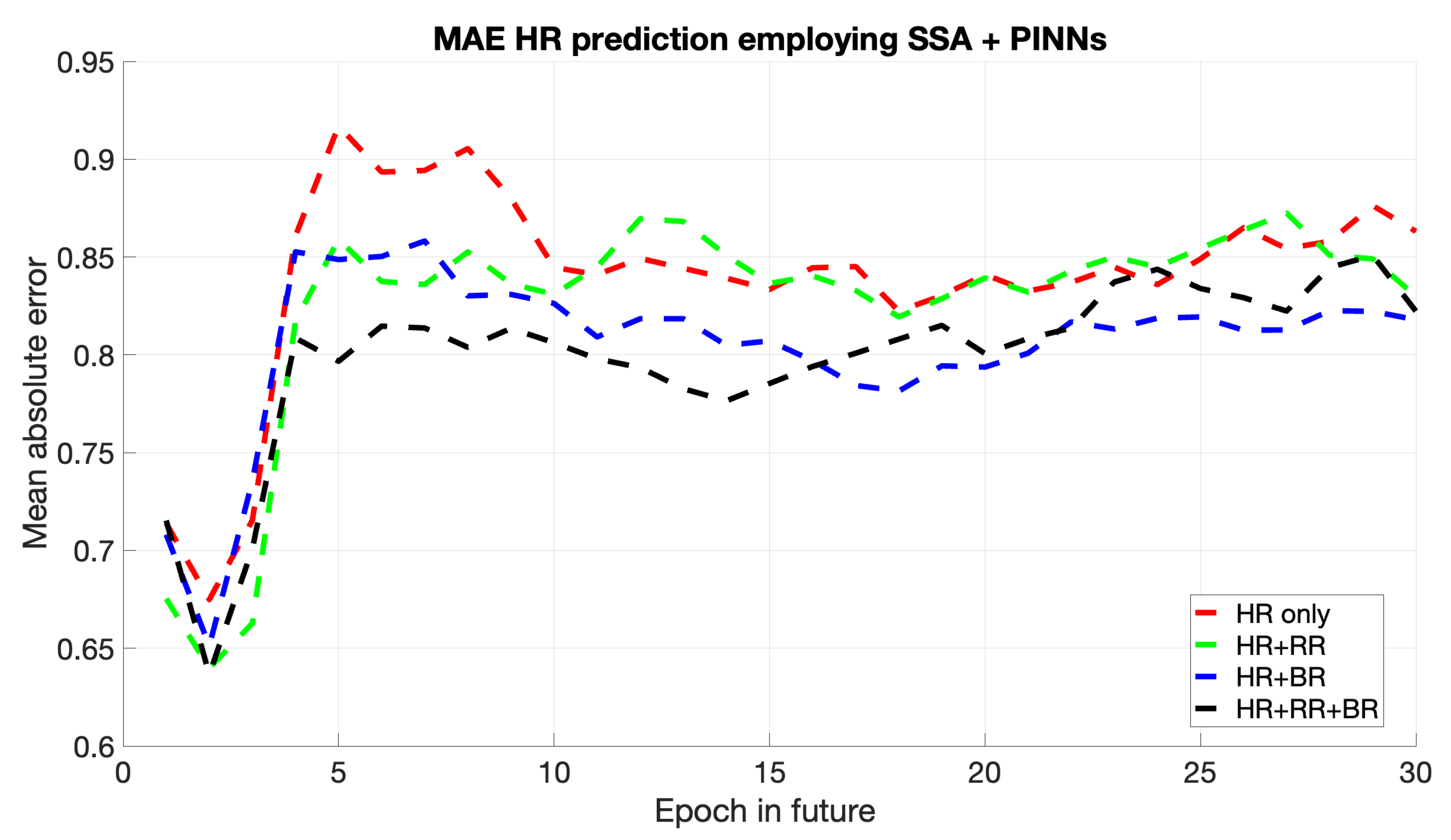 - Compare models based on MAE, assessing the impact of SSA and auxiliary inputs (BR and RR) on HR prediction accuracy.