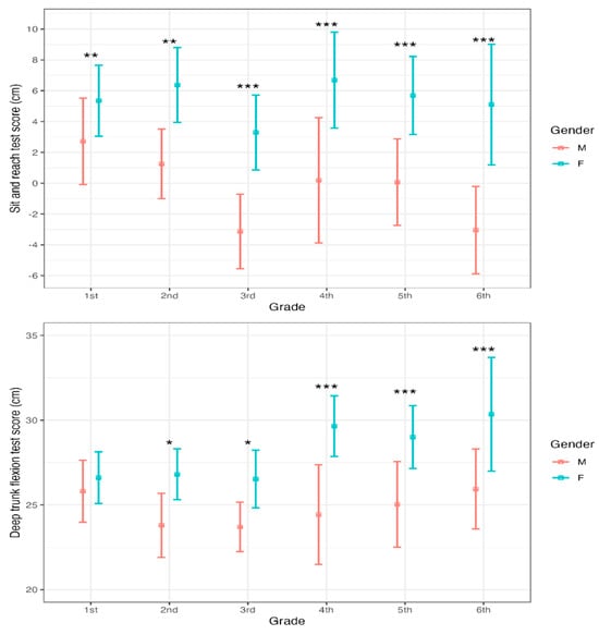 This disparity, which has been documented in various contexts, underscores the need for tailored educational interventions aimed at improving muscle extensibility according to sex, school grade and fitness level [,].