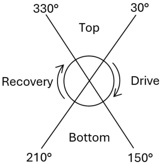 Each revolution was subsequently divided into four phases to produce separate top, drive, bottom and recovery phases [25], as shown in Figure 1. Mean CRPv values per phase were calculated for each.