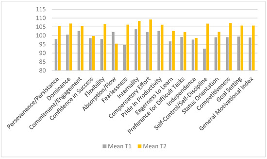 These increases indicate greater athlete engagement in the proposed intervention plan, particularly in terms of their ability to make extra efforts to overcome difficulties and set clear and ambitious goals.