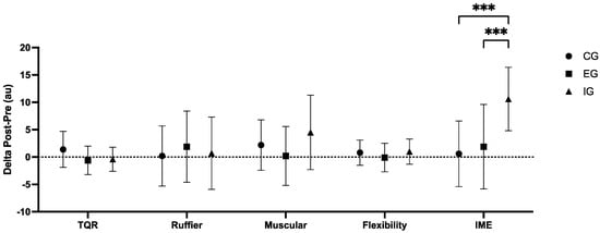 | Muscular (au) | CG | 16.0 ± 6.2 | 17.8 ± 6.7 | 2.2 ± 4.6 | 0.093 |