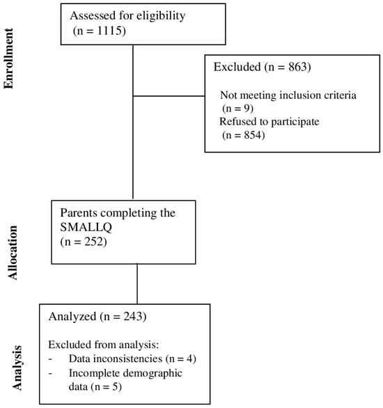 A total of 243 parents were analyzed in this study. Figure 1 illustrates the flow diagram for the prospective cohort study.