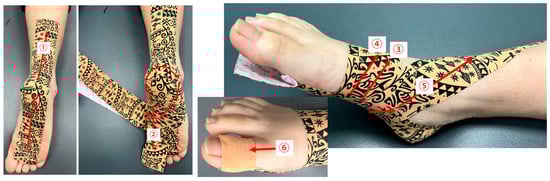 - Song, J.; Lin, J.; Austin, T.; Teter, R.; Oshiokpekhai, K.; An, M.; Tran, H.; Palamarchuk, H.; Pettineo, S. Does QUICK TAPE Offer Comparable Support and Off-loading as Low-Dye Taping? J. Am. Podiatr. Med. Assoc. 2021, 111, 09. [Google Scholar]