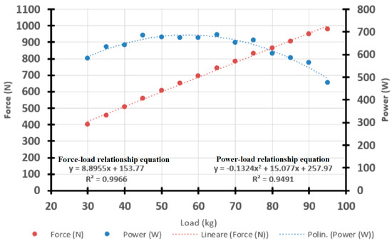 Example of data analysis and computation of the Power–Load relationship by interpolation of the experimental data.