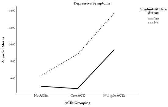 Depressive symptoms by ACEs grouping and student-athlete status.