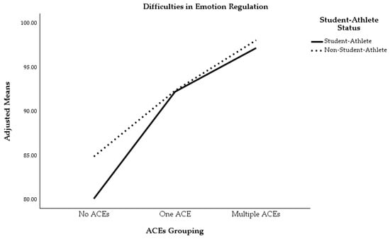 Difficulties in emotion regulation by ACEs grouping and student-athlete status.