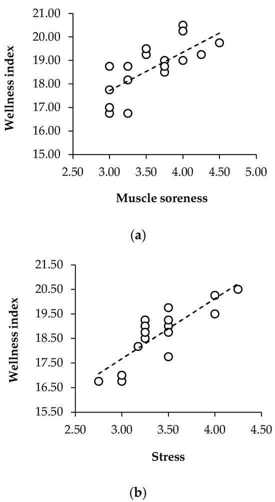 The assessment of player well-being through questionnaires plays a significant role in managing training and match demands in soccer. These questionnaires serve as a valuable tool for this purpose, effectively complementing the monitoring of training loads [1,2]. This practice aims to mitigate the risks of injury and overtraining by providing insights into athletes’ physical and psychological states [3,4,5]. In fact, recent studies indicate that coaches and sports professionals frequently utilize periodization strategies, modifying training loads in response to players’ wellness feedback from earlier sessions [6]. Accordingly, well-being is typically assessed using structured questionnaires that encompass various factors such as fatigue, sleep quality, muscle soreness, mood, and stress levels [7,8]. These tools provide valuable insights into how players manage the physical and psychological demands of training and competition [9]. In this sense, the scientific literature has demonstrated that the relationship between wellness and training intensity is particularly noteworthy, as it can indicate how players respond to different levels of exertion [10]. For instance, low wellness scores in conjunction with high training intensity may signal the need for adjustments in training loads, while positive wellness scores following intense sessions could suggest that the current training regimen is effective [11].