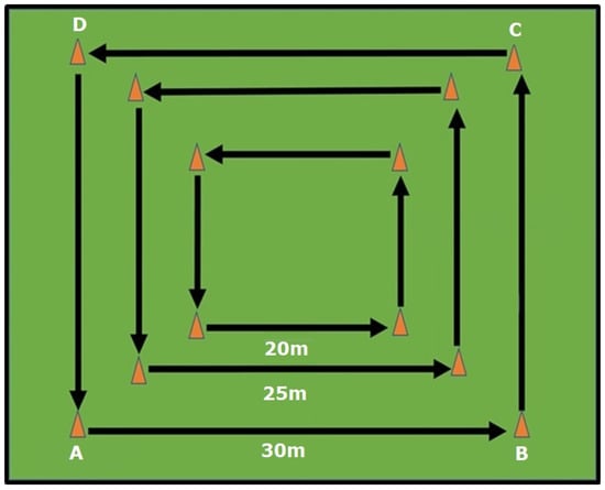 Example of an ability-based training session with distances (in meters) using a box approach.