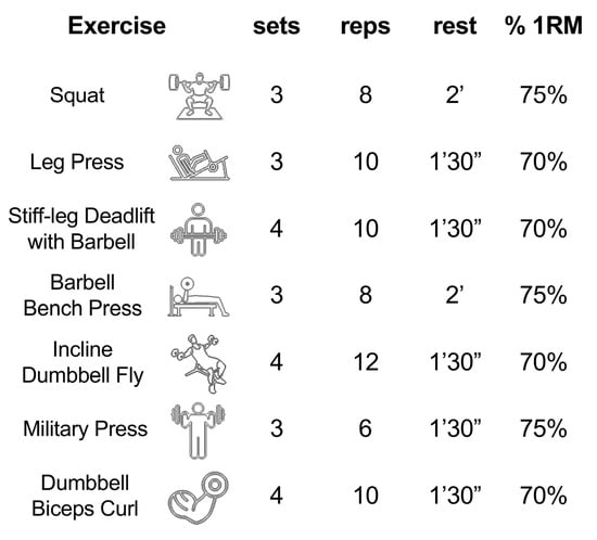 - Faelli, E.; Bisio, A.; Codella, R.; Ferrando, V.; Perasso, L.; Panascì, M.; Saverino, D.; Ruggeri, P. Acute and chronic catabolic responses to crossfit® and resistance training in young males. Int. J. Environ. Res. Public Health 2020, 17, 7172. [Google Scholar] [CrossRef]