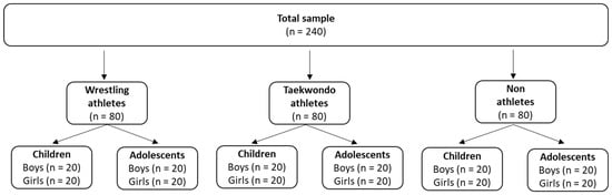 | Variable | Age Group | Wrestling Athletes (n = 80) | Taekwondo Athletes (n = 80) | Non-Athletes (n = 80) |