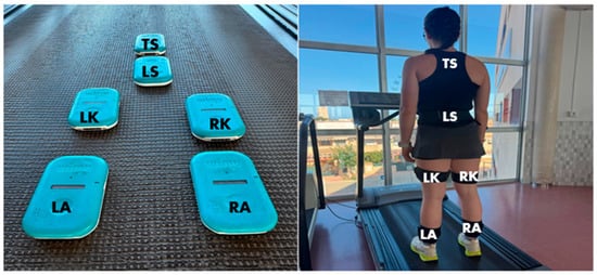 Prior to the placement of the inertial devices, they were manually calibrated according to the manufacturer’s recommendations and synchronized. This process is fundamental for eliminating 3D accelerometer error sources (offset error, scaling error, non-orthogonal error, and random error). The devices were affixed to the following anatomical locations following a validated scheme: (i) upper back, on the interscapular line; (ii) lumbar region, at L3 near the center of mass; (iii) knee, 3 cm above the kneecap; and (iv) ankle, 3 cm above the lateral malleolus. At both the knee and ankle, the devices were placed on the outside of the right leg on all athletes, while an anatomically designed harness was used for the upper back, and the rest were secured with a specifically designed elastic band. Before the test, participants performed a standardized 10 min warm-up that included 5 min of continuous running at 7 km/h, 3 min of joint mobility exercises, and 2 min of progressions (gentle accelerations on the treadmill). This procedure was monitored in real-time via WIMU PRO™ devices (RealTrack Systems, Almería, Spain) that transmitted data wirelessly to the SPRO™ software, ensuring the correct functioning of the sensors. The main protocol was an adaptation of the VAM (Maximal Aerobic Speed) test, designed for continuous and controlled analysis. The test began at a speed of 8.0 km/h, with increments of +0.2 km/h every 12 s. The test concluded upon the athlete’s voluntary exhaustion or observation of a technical criterion (e.g., unstable stride frequency, evident fatigue). The treadmill surface was flat (1% incline). Upon completion of the main test, participants performed 5 min of recovery intensity running. To minimize interference from uncontrolled variables, all participants were instructed to maintain their habitual lifestyle and normal dietary intake before and during the study. Furthermore, tests were always performed at the same time of day (i.e., 9:00 a.m.) to avoid the possible effects of circadian rhythms, and it was ensured that they had not performed high-intensity physical activity in the 48 h prior to the tests. Environmental control was kept constant (temperature 22–24 °C, humidity < 50%). All participants used standard training footwear to homogenize conditions. The integrity of the sensors was verified at all times by two researchers.