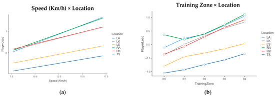 27]. LMMs also allowed for modeling individual variability among the athletes and understanding the interactions between body location, speed, and training zone [