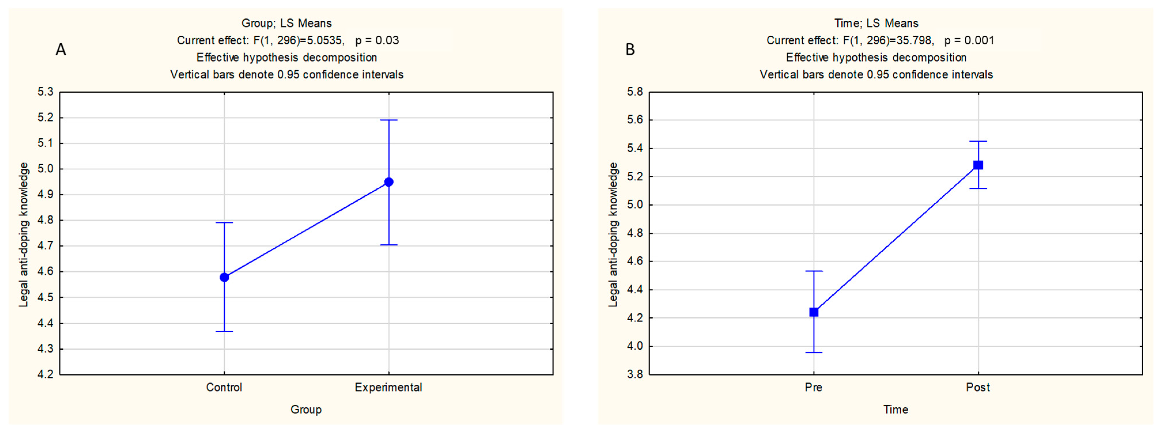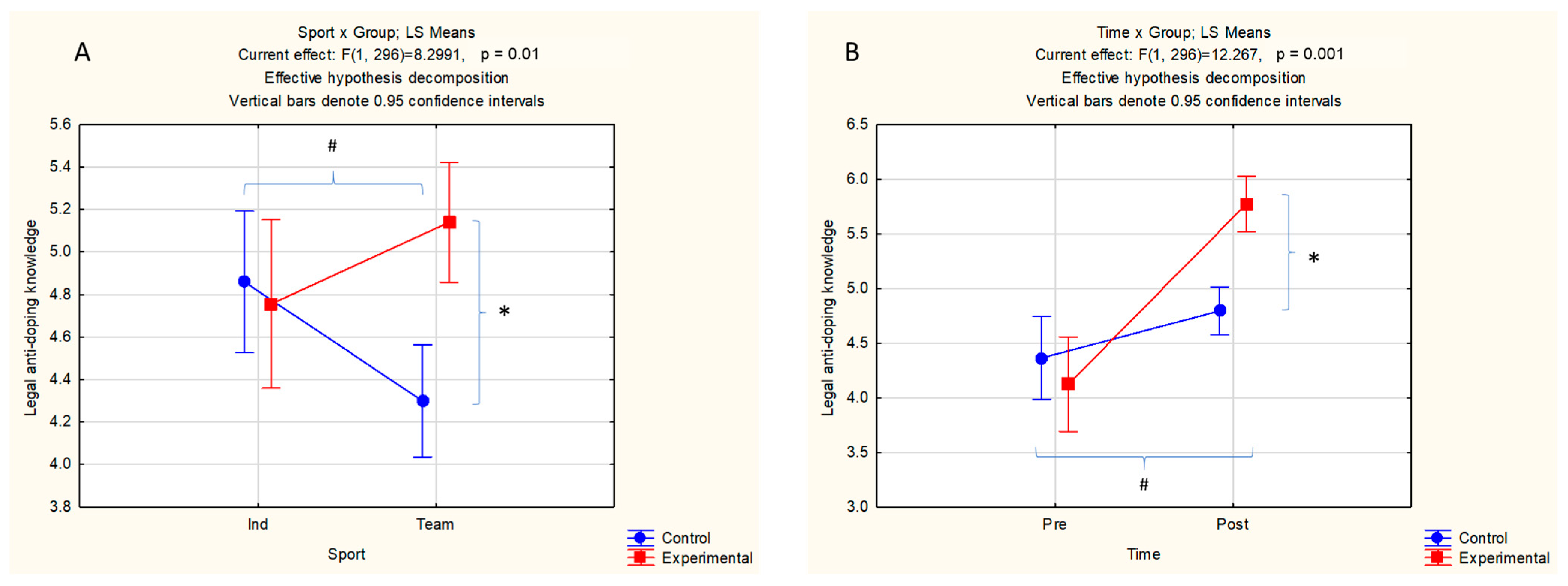 29]. Therefore, the initial difference in legal anti-doping knowledge between team and individual sports provided greater scope for educational gains in the former ones.