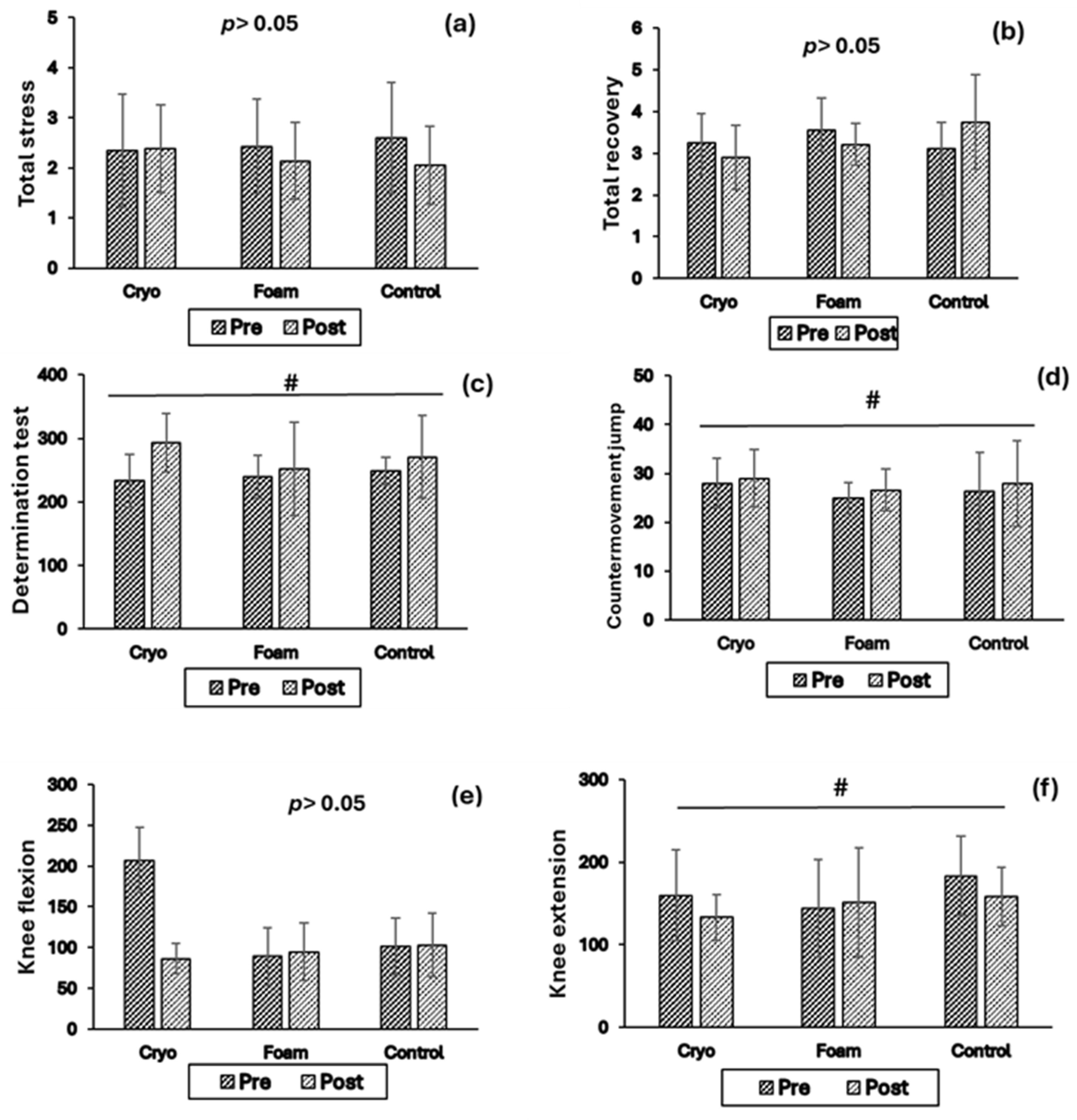| Cryotherapy n = 5 | Foam Rolling n = 5 | Control n = 5 | |