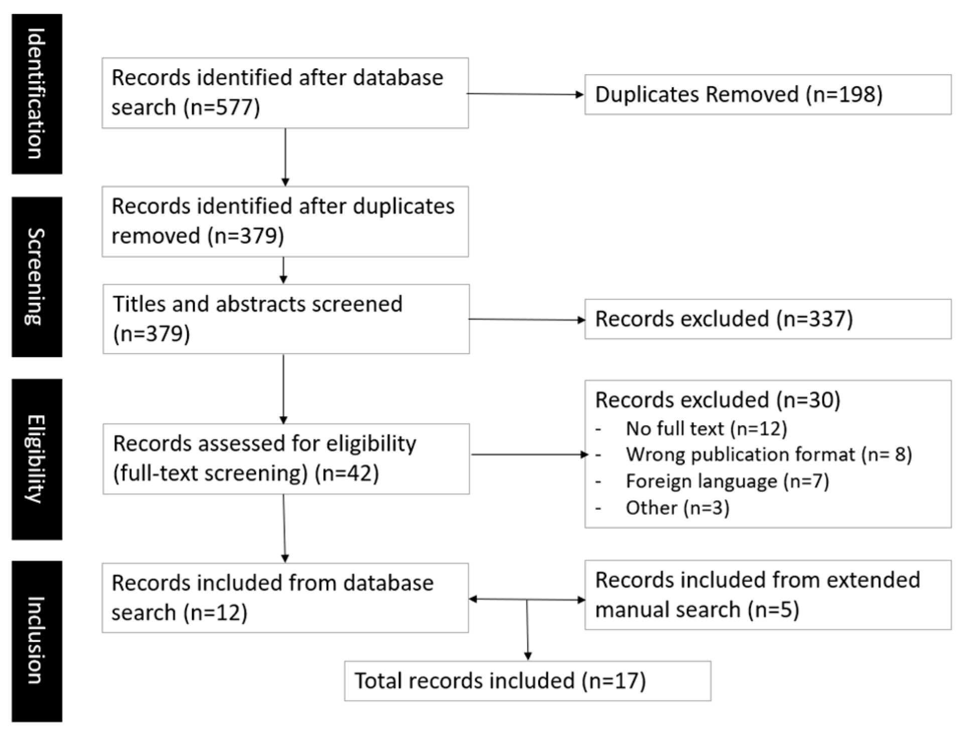 Finally, we report here on the nature of the texts excluded at the full-text screening phase. Of those texts, most (n = 12) were excluded because a full text could not be located. Indeed, many items, though listed on our selected databases, directed to dead links, and could not be located through alternative search channels (e.g., Google Scholar). Another group of studies were excluded for not corresponding to the desired publication type (n = 8)—peer-reviewed articles—and featured predominantly conference proceedings. A further batch of studies were excluded due to being exclusively in a foreign language (n = 7) such as Ukrainian or Korean. Other studies (n = 3) were excluded for not documenting table tennis activities or for not meeting the thematic inclusion criteria.