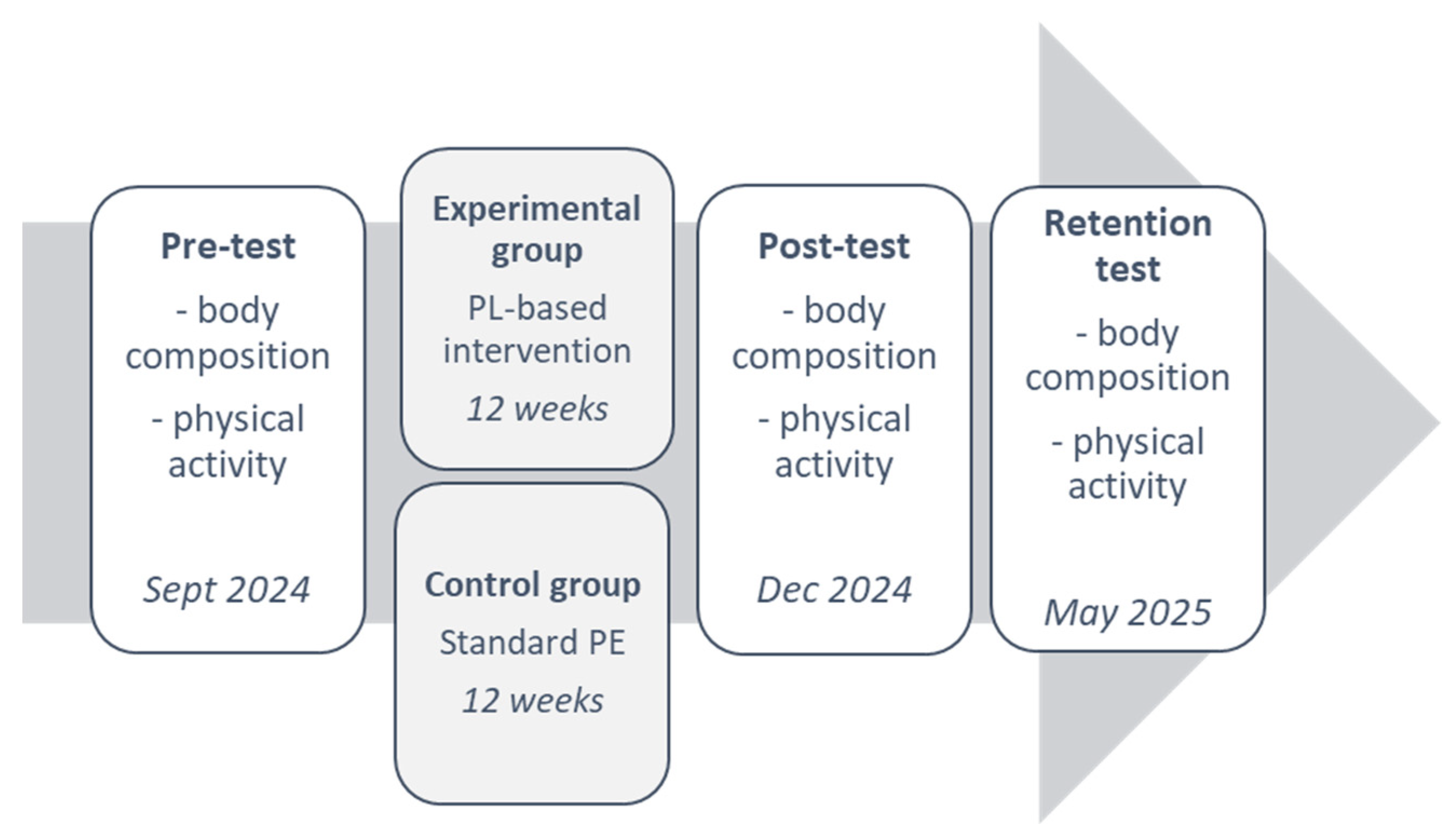 | Control Group Activity | Standard PE curriculum without PL-educational video content |