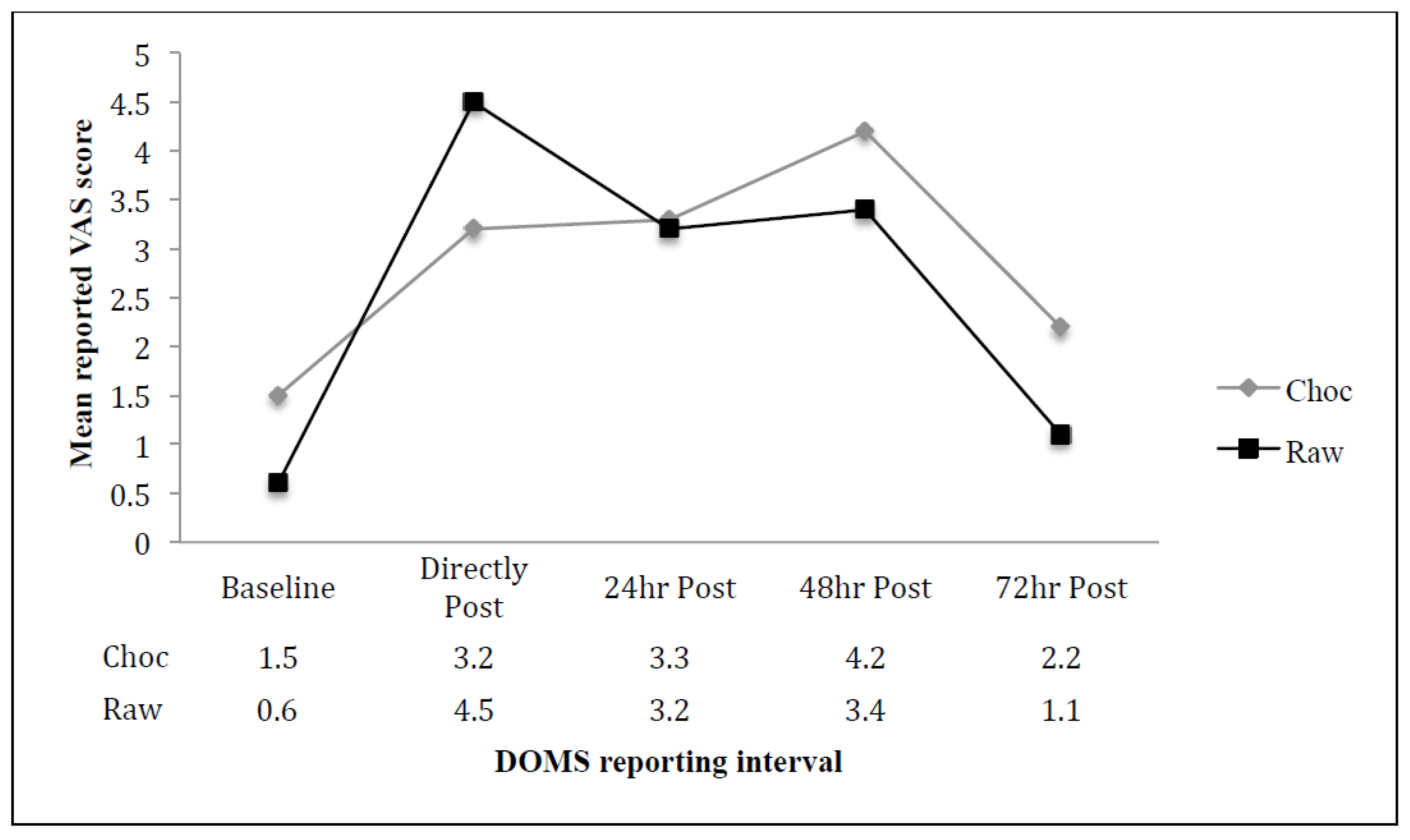 With chocolate milk being a processed food commonly used and researched as a recovery aid from intense physical activity and raw milk being a relatively novel product, especially when combined with honey for the same purpose a comparison between the two has yet to be conducted. Therefore, this study examined the effects of a chocolate milk solution (CMS) and a raw milk and honey solution (RMS) on delayed onset muscle soreness.
