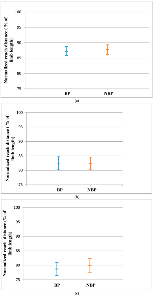 The 95% confidence intervals for all the reach distances and CRDS for both BP and NBP subjects include the null hypothesis means and also showed large overlaps. Hence the conclusion can be drawn that there is no statistically significant difference between the reach distances of BP and NBP young athletes for both RLL and LLL. Finally, because of the sample size (N = 53), limited statistical power may have played a role in limiting the significance of the reach distances between the BP and NBP groups. Power analysis showed that on the basis of the lowest effect size observed in the present study (d = 0.01), approximately 123,652 subjects would be needed in both BP and NBP groups to obtain statistical power at level 0.80 [42]. Therefore, this supports the results showing no differences.