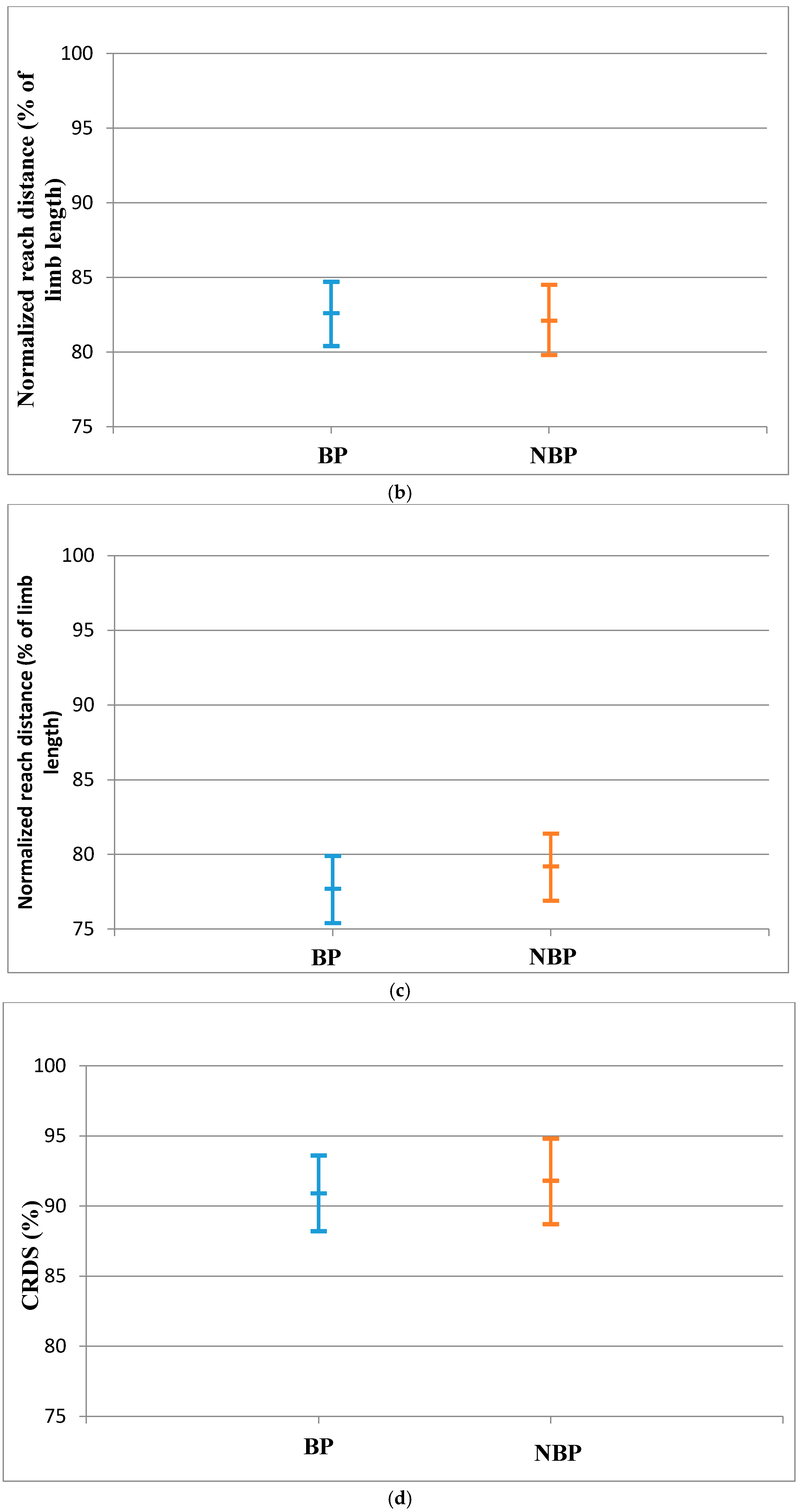 Normalized Reach Distance, Composite Reach Distance Score (CRDS) and limb length (cm) (mean ± sd) for BP subjects.