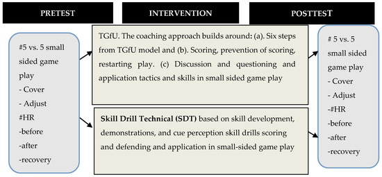 On the other hand, SDT coaching approaches players by means of linear instruction conducted by coaches, which in terms of volume and intensity as well rest is similar to the TGfU approach, but focuses on skill teaching and learning, mastery skill employing, skill drills activities and feedback as the main content of coaching. Players are also given some form of game play, either small-sided game play or full game play, allocated at the end of each coaching unit. The implementation of these two intervention periods is based on sports training principles and motor learning principles [4,48].