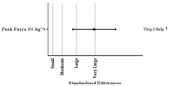 | Peak Force (N·kg−¹) | 31.75 | 3.67 | 25.45 | 2.69 | 0.026 | 1.96 | 0.91 | 3.81 (2.40) |