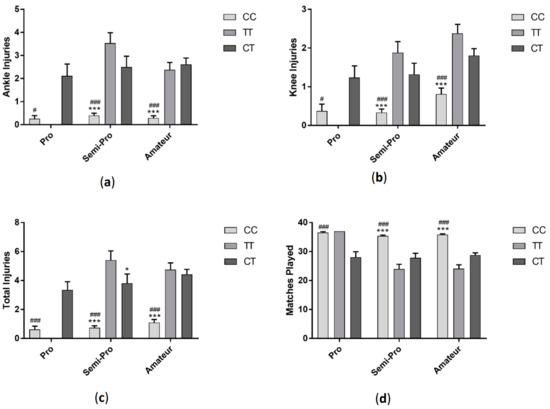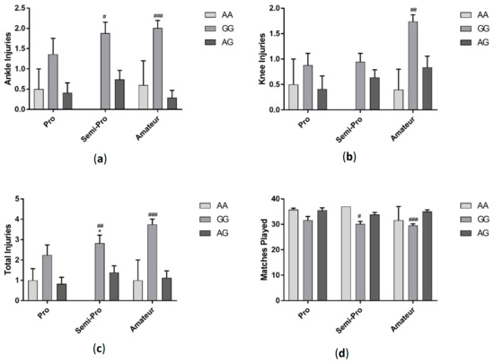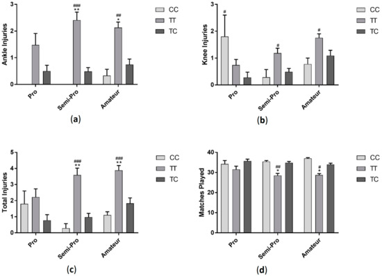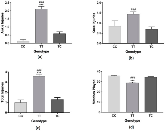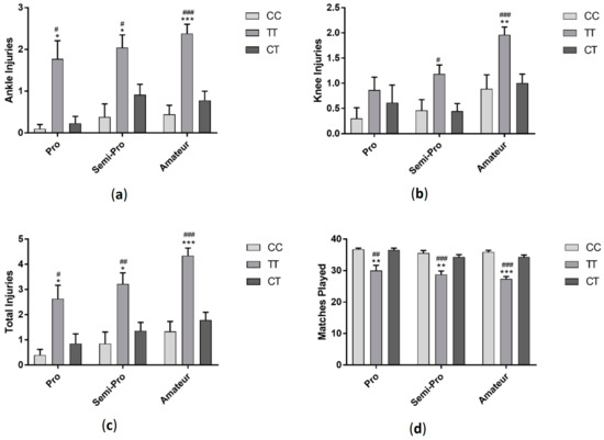 3.2. AMPD1 Genotype Effect on Injury and Matches Played