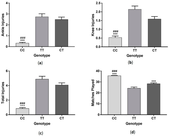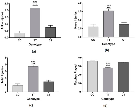 3.3. COL5A1 Genotype Effect on Injury and Matches Played