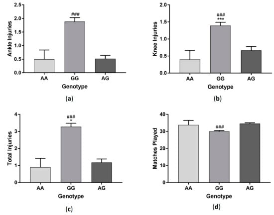3.4. IGF2 Genotype Effect on Injury and Matches Played