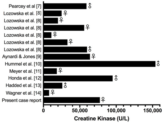 - Khan, F.Y. Rhabdomyolysis: A review of the literature. Neth. J. Med. 2009, 67, 272–283. [Google Scholar] [PubMed]