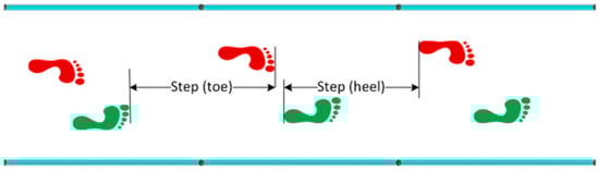 - Step length is the distance between the tip (toe) of two subsequent feet or the distance between the heel of two subsequent feet (measured in meters) (Figure 1).
