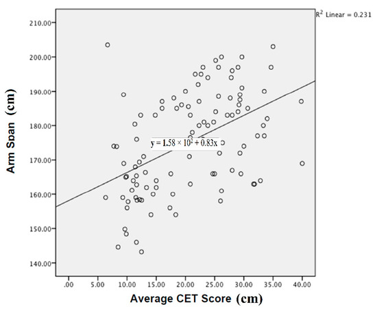 3.5. Multiple Regression Analysis: Influence of Arm Span and Age on CET Scores