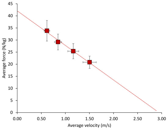Power output is an important determinant in many sports [1] and is dependent upon the specific force-velocity (Fv) characteristics of each athlete [2]. Concentric Fv characteristics can be described by an inverse linear relationship derived from measurements taken during the propulsion (concentric) phase of a series of loaded jump squats [3,4,5]. This relationship is predicated on the increased external load resulting in greater ground reaction forces (GRF) being produced but with lower vertical velocities attained by the load, thereby reflecting the inverse Fv relationship observed during concentric contractions of isolated skeletal muscle [6]. Furthermore, the linearity of the concentric Fv relationship assessed from loaded vertical jumps has led to the proposal that the use of only two distinct loads is required for the measurement of concentric Fv characteristics [3]. This two-point method of assessment is becoming a common means by which to measure concentric Fv characteristics and has been shown to be reliable, although it is recommended that the two loads selected must produce very different average velocities (e.g., using loads equivalent to 20% and 70% 1-repetition maximum [1-RM]; using loads that produce average velocities of ~1 m/s and ~0.5 m/s) in order to accurately and reliably model the Fv relationship [7,8]. Such methods have been previously validated in vertical jump tasks [9] and the resulting concentric Fv relationship has been used effectively to establish individualized resistance training programs to mitigate either force or velocity deficits [10].
