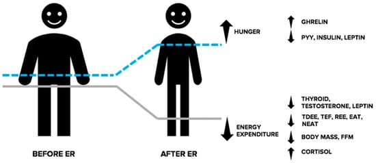 - Trexler, E.T.; Smith-Ryan, A.E.; Norton, L.E. Metabolic adaptation to weight loss: Implications for the athlete. J. Int. Soc. Sports Nutr. 2014, 11, 7. [Google Scholar] [CrossRef]