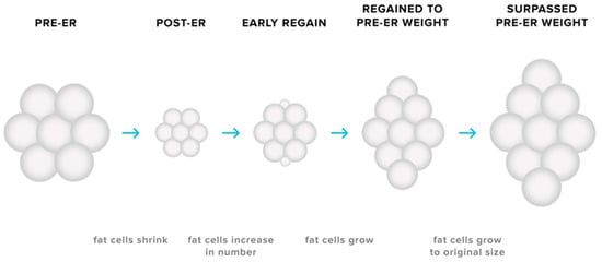 - MacLean, P.S.; Higgins, J.A.; Giles, E.D.; Sherk, V.D.; Jackman, M.R. The role for adipose tissue in weight regain after weight loss. Obes. Rev. Off. J. Int. Assoc. Study Obes. 2015, 16 (Suppl. 1), 45–54. [Google Scholar] [CrossRef]
