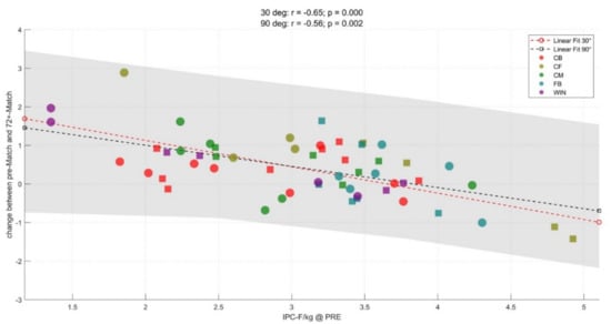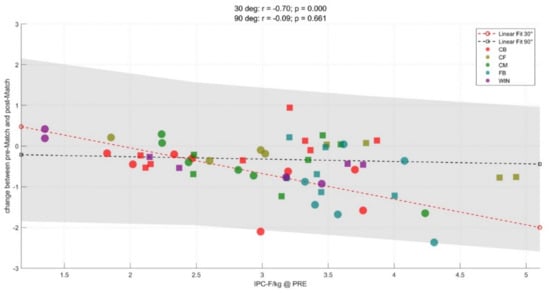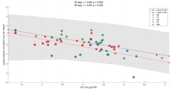 3.2. Relationship between Pre-Match IPC-F and IPC-F Change Following Match-Play