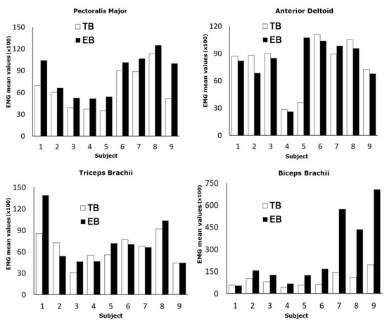 In Figure 5 the EMG mean values for each examined subject are reported.