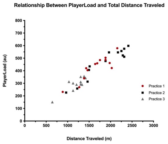The present study has limitations that warrant discussion. A limited number of practices were included in the analyses; however, this study serves as a preliminary analysis for future research to couple eTL devices, as well as illuminate typical player eTL profiles experienced during the off-season training block. In addition, these observations may not be generalizable to female collegiate players during the off-season, as previous evidence has suggested female players may cover less distance and have lower movement frequencies than their male counterparts []. Furthermore, although the IMU used in the present study has been established as valid and reliable [,,], future investigations should provide more evidence beyond that of the manufacturer solidifying the validity and reliability of the IPS used in the present study.