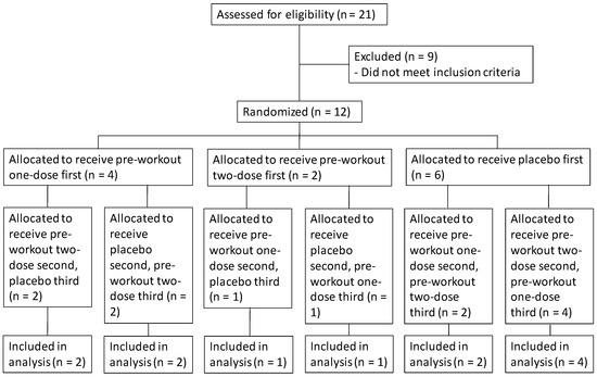 Pre-workout supplementation is a nutritional strategy that involves consuming a mixture of bioactive compounds and dietary ingredients prior to a bout of exercise for ergogenic purposes. For example, pre-workout supplements often contain beta-alanine, caffeine, citrulline, tyrosine, taurine, creatine, arginine, and carnitine as well as numerous vitamins and minerals [1]. Thus, the purported effects of pre-workout supplements generally consist of elevated metabolic rate, increased measures of anaerobic and aerobic performance, and improvements in body composition [2,3,4,5,6]. Due to the relatively brief period of time that pre-workout supplements have been available, there are limited data concerning the influence of these multi-ingredient products on their ergogenic potential and variables related to general health (e.g., resting heart rate and blood pressure).