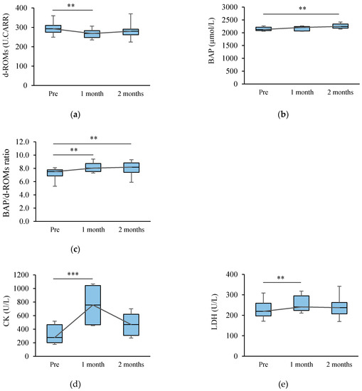 3.4. Changes in Runners Having High d-ROMs Values (Study 2)