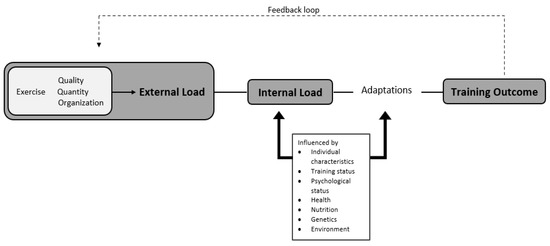 Internal TL often referred to as the psychophysiological stimulus stressor that is imposed on an athlete due to the prescription of the external physical stimulus (Figure 1) [1,18]. For example, internal TL involves the quantification of the athlete’s response to the external load [18]. The measurement of internal TL can be subjective or objective [1,18]. These subjective, self-reported measures have been quantified previously in team sports through non-invasive methods include session rating of perceived exertion (s-RPE) and subjective questionnaire inventories [22]. Objective measures are not self-reported and include heart rate (HR) and blood lactate [22]. The ability to quantify internal TL may assist practitioners in providing greater understanding of the psychophysiological responses that occur through training and competition [16]. The adaptation which occurs through the training stimulus is a result of the internal TL which is determined by the external TL the athlete is subjected to [31]. The internal training response will dictate the training outcome; therefore, it is important that both external and internal TL measures are combined to provide a complete overview of the training process and response (Figure 1) [15].