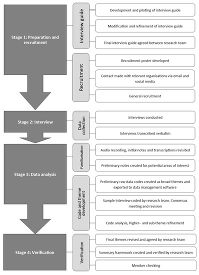 - Gale, N.K.; Heath, G.; Cameron, E.; Rashid, S.; Redwood, S. Using the framework method for the analysis of qualitative data in multi-disciplinary health research. BMC Med. Res. Methodol. 2013, 13, 117. [Google Scholar] [CrossRef]