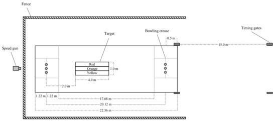 Schematic of the set-up for the bowling-specific performance test.