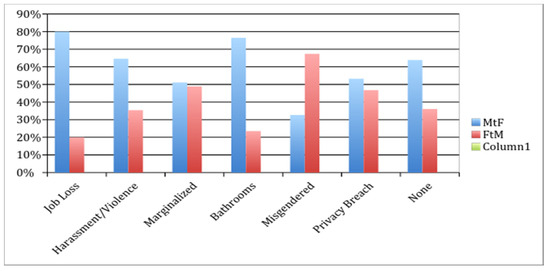 In this study, there was a distinct gendered aspect to the experiences of workplace discrimination. Trans men were more likely to experience being misgendered and a breach of privacy, while trans women were more likely to report a wider variety of types of discrimination. Previously, Dietert and Dentice [37] found misgendering coming from both co-workers and upper management. Schilt [38] found that, particularly among cis gender heterosexual women, reactions to open transitions at work focused around bodily changes that served to delegitimize the trans men’s identities as men by focusing on the body as female through the vehicles of genitalia and surgeries framed within a cis gender narrative (breast removal and hysterectomies).